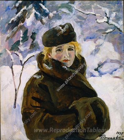 Nous vous proposons une reproduction artisanale sur toile du célèbre tableau 'Portrait d'Anna Kondratyevna Reyhshtadt dans le fond d'un paysag' de Pyotr Konchalovsky, provenant du Musée de la Reproduction.