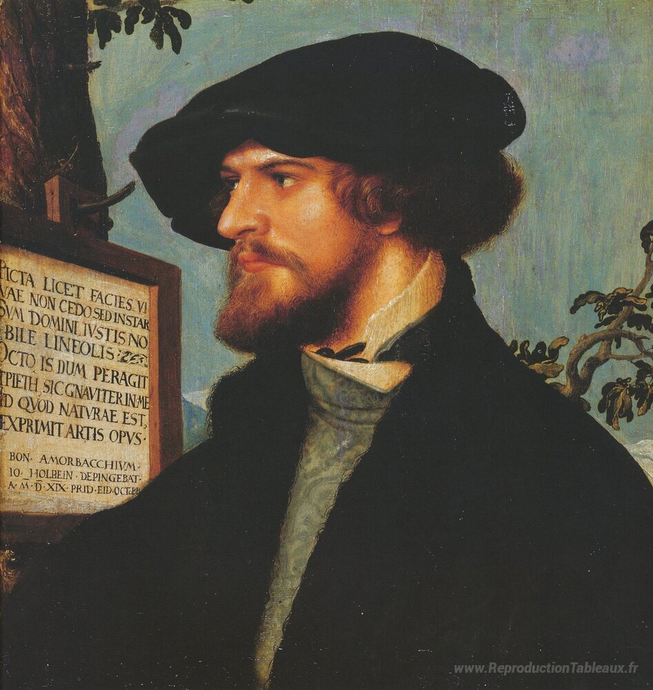 Nous vous proposons une reproduction artisanale sur toile du célèbre tableau 'Portrait de Bonifacius Amerbach' de Hans Holbein the Younger, provenant du Musée de la Reproduction.