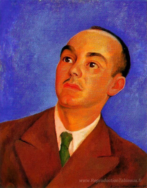Nous vous proposons une reproduction artisanale sur toile du célèbre tableau 'Portrait de Carlos Pellicer' de Diego Rivera, provenant du Musée de la Reproduction.