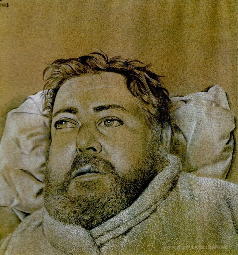 Nous vous proposons une reproduction artisanale sur toile du célèbre tableau 'Portrait de Christian Berard' de Lucian Freud, provenant du Musée de la Reproduction.