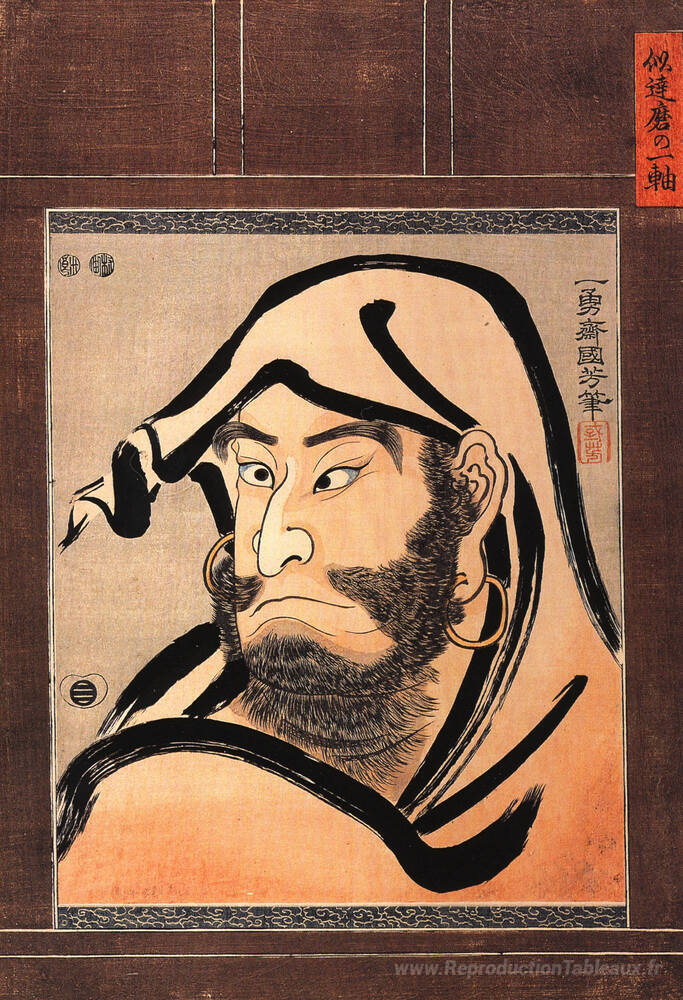 Nous vous proposons une reproduction artisanale sur toile du célèbre tableau 'Portrait de Daruma' de Utagawa Kuniyoshi, provenant du Musée de la Reproduction.