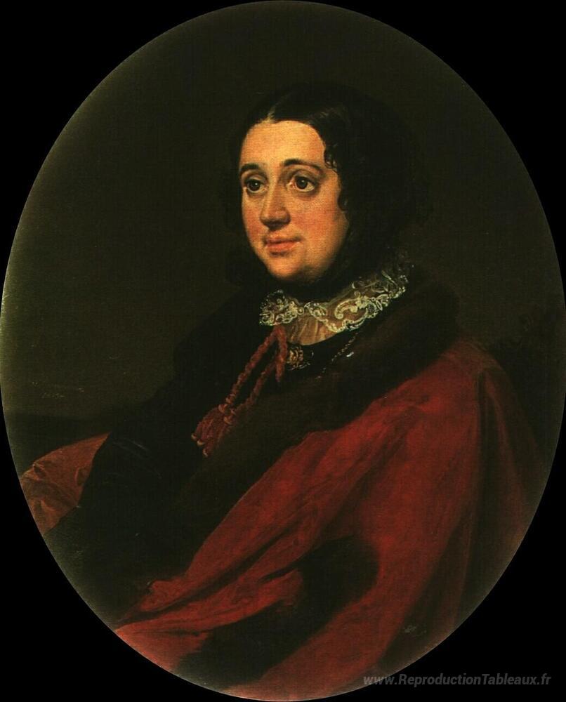 Nous vous proposons une reproduction artisanale sur toile du célèbre tableau 'Portrait de E.P. Rostopchine' de Vasily Tropinin, provenant du Musée de la Reproduction.