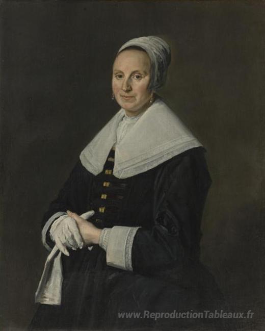 Nous vous proposons une reproduction artisanale sur toile du célèbre tableau 'Portrait de femme avec des gants' de Frans Hals, provenant du Musée de la Reproduction.