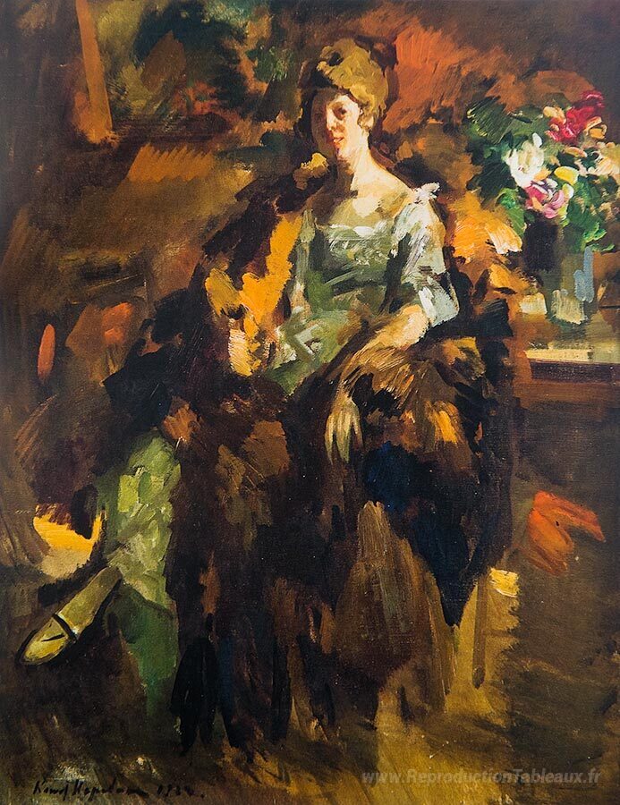 Nous vous proposons une reproduction artisanale sur toile du célèbre tableau 'Portrait de femme' de Konstantin Korovin, provenant du Musée de la Reproduction.