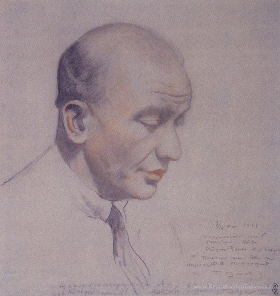 Nous vous proposons une reproduction artisanale sur toile du célèbre tableau 'Portrait de F.F. Pavillon' de Boris Kustodiev, provenant du Musée de la Reproduction.
