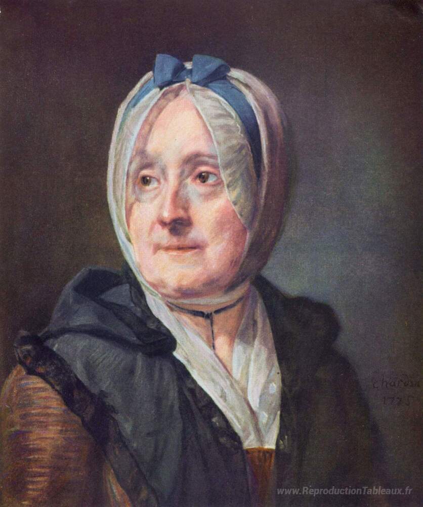 Nous vous proposons une reproduction artisanale sur toile du célèbre tableau 'Portrait de Françoise Marguerite Pouget' de Jean-Baptiste-Simeon Chardin, provenant du Musée de la Reproduction.