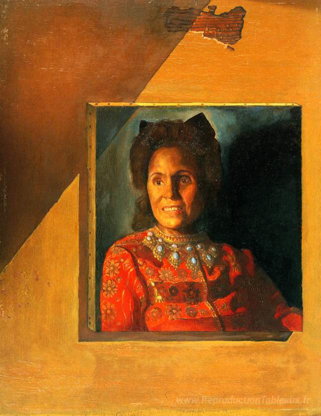 Nous vous proposons une reproduction artisanale sur toile du célèbre tableau 'Portrait de gala' de Salvador Dali, provenant du Musée de la Reproduction.