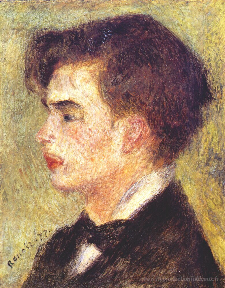 Nous vous proposons une reproduction artisanale sur toile du célèbre tableau 'Portrait de Georges Rivière' de Pierre-Auguste Renoir, provenant du Musée de la Reproduction.