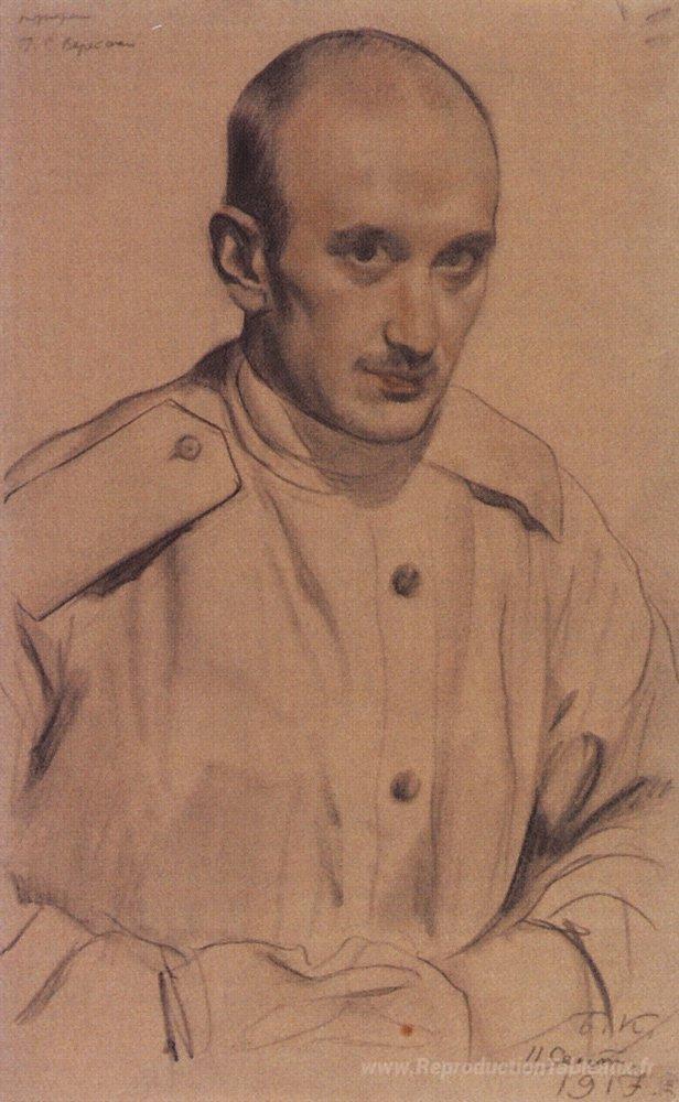 Nous vous proposons une reproduction artisanale sur toile du célèbre tableau 'Portrait de G.S. Vereisky' de Boris Kustodiev, provenant du Musée de la Reproduction.