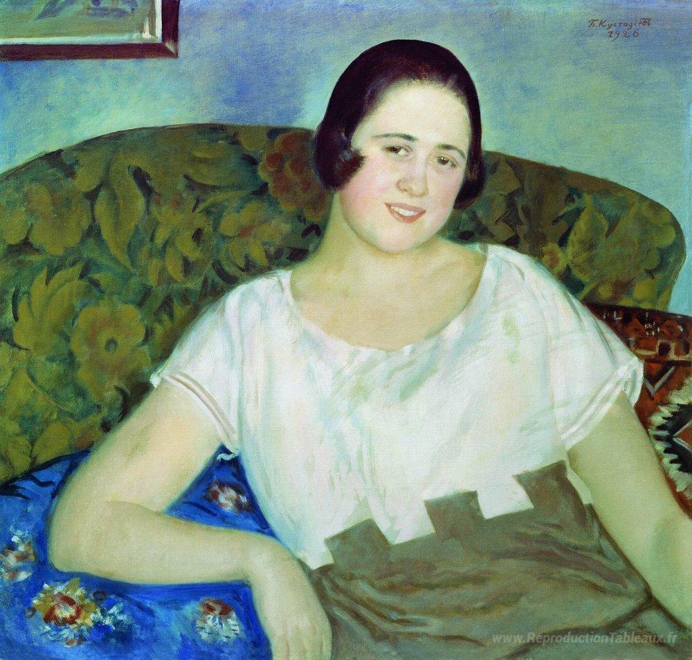 Nous vous proposons une reproduction artisanale sur toile du célèbre tableau 'Portrait de I. Ivanova' de Boris Kustodiev, provenant du Musée de la Reproduction.
