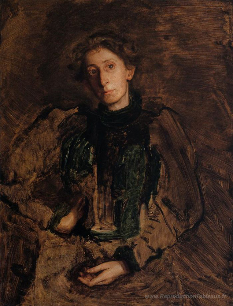Nous vous proposons une reproduction artisanale sur toile du célèbre tableau 'Portrait de Jennie Dean Kershaw' de Thomas Eakins, provenant du Musée de la Reproduction.