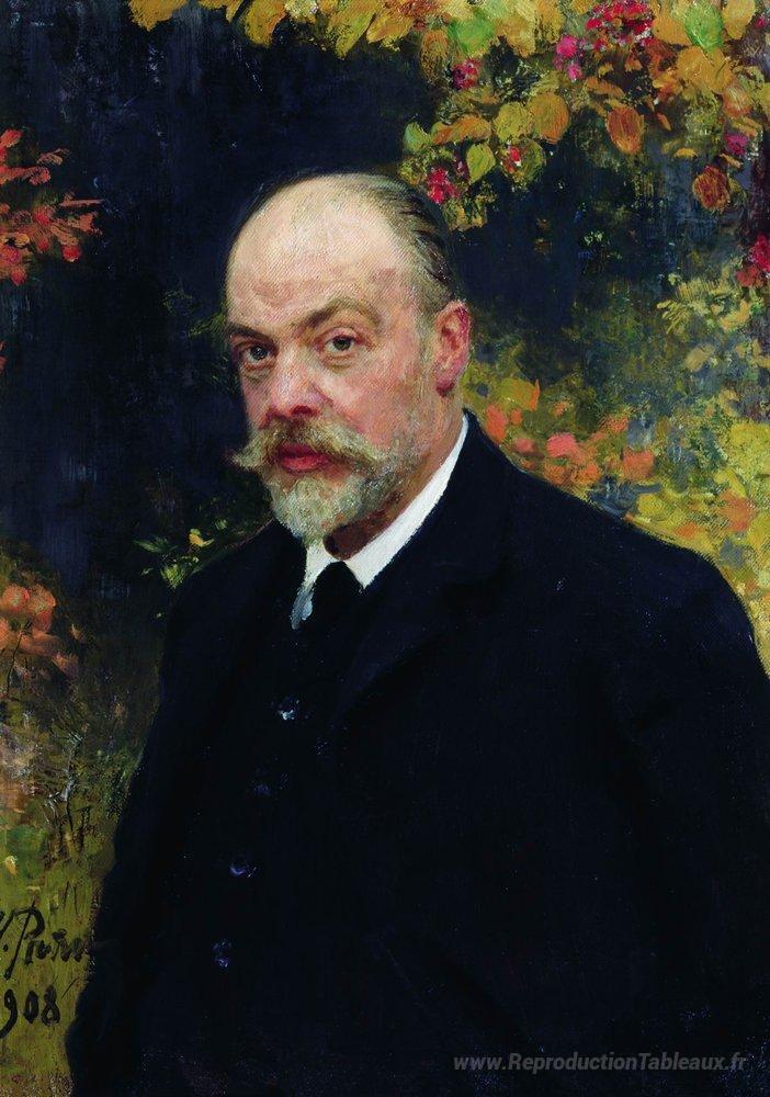Nous vous proposons une reproduction artisanale sur toile du célèbre tableau 'Portrait de Kryuchkov' de Ilya Repin, provenant du Musée de la Reproduction.