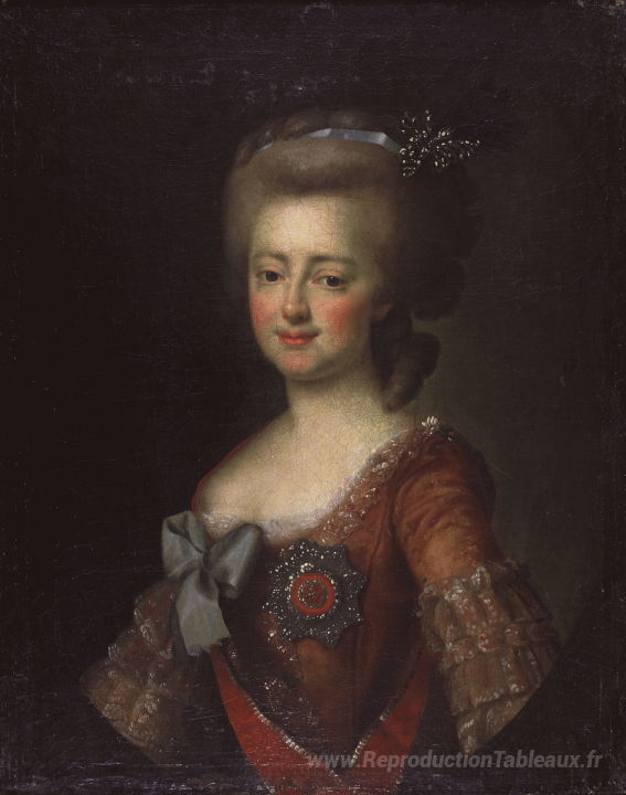 Nous vous proposons une reproduction artisanale sur toile du célèbre tableau 'Portrait de la grande duchesse Maria Feodorovna' de Dmitry Levitzky, provenant du Musée de la Reproduction.