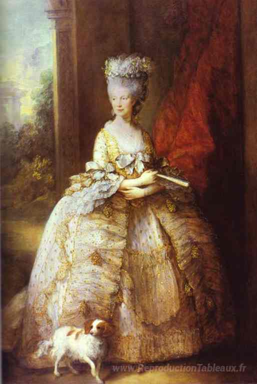 Nous vous proposons une reproduction artisanale sur toile du célèbre tableau 'Portrait de la reine Charlotte' de Thomas Gainsborough, provenant du Musée de la Reproduction.