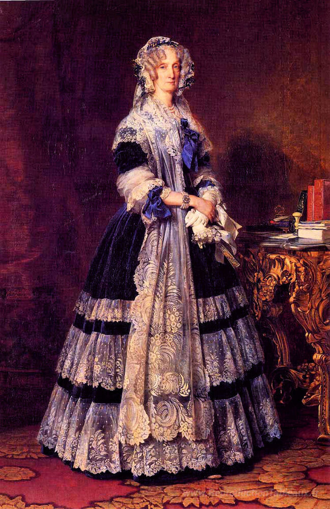 Nous vous proposons une reproduction artisanale sur toile du célèbre tableau 'Portrait de la reine Marie Amelie de France' de Franz Xaver Winterhalter, provenant du Musée de la Reproduction.