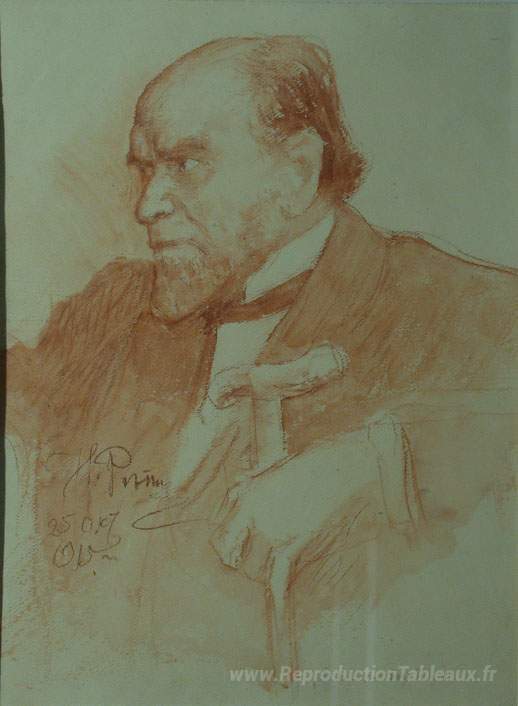 Nous vous proposons une reproduction artisanale sur toile du célèbre tableau 'Portrait de l'académicien A. F. Koni' de Ilya Repin, provenant du Musée de la Reproduction.