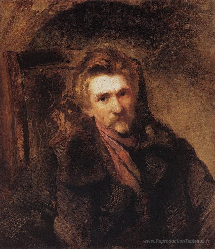 Nous vous proposons une reproduction artisanale sur toile du célèbre tableau 'Portrait de l'artiste Alexander Popov' de Konstantin Makovsky, provenant du Musée de la Reproduction.