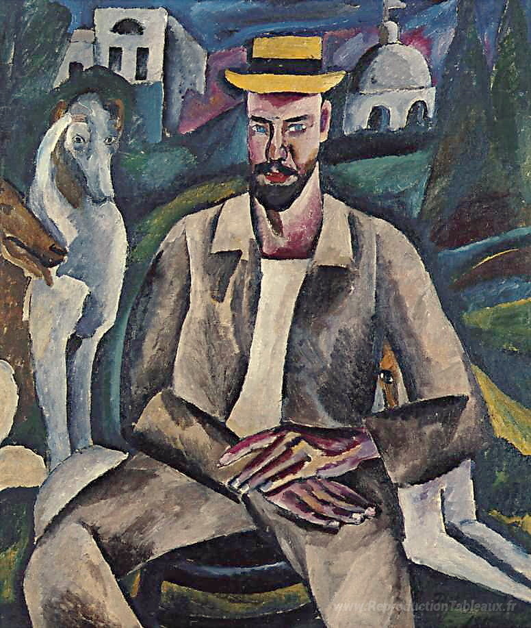 Nous vous proposons une reproduction artisanale sur toile du célèbre tableau 'Portrait de l'artiste Vladimir Rozhdestvensky' de Pyotr Konchalovsky, provenant du Musée de la Reproduction.