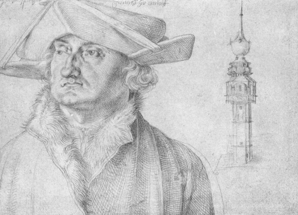 Nous vous proposons une reproduction artisanale sur toile du célèbre tableau 'Portrait de Lazarus Ravensburger et les tourelles de la cour de ' de Albrecht Durer, provenant du Musée de la Reproduction.