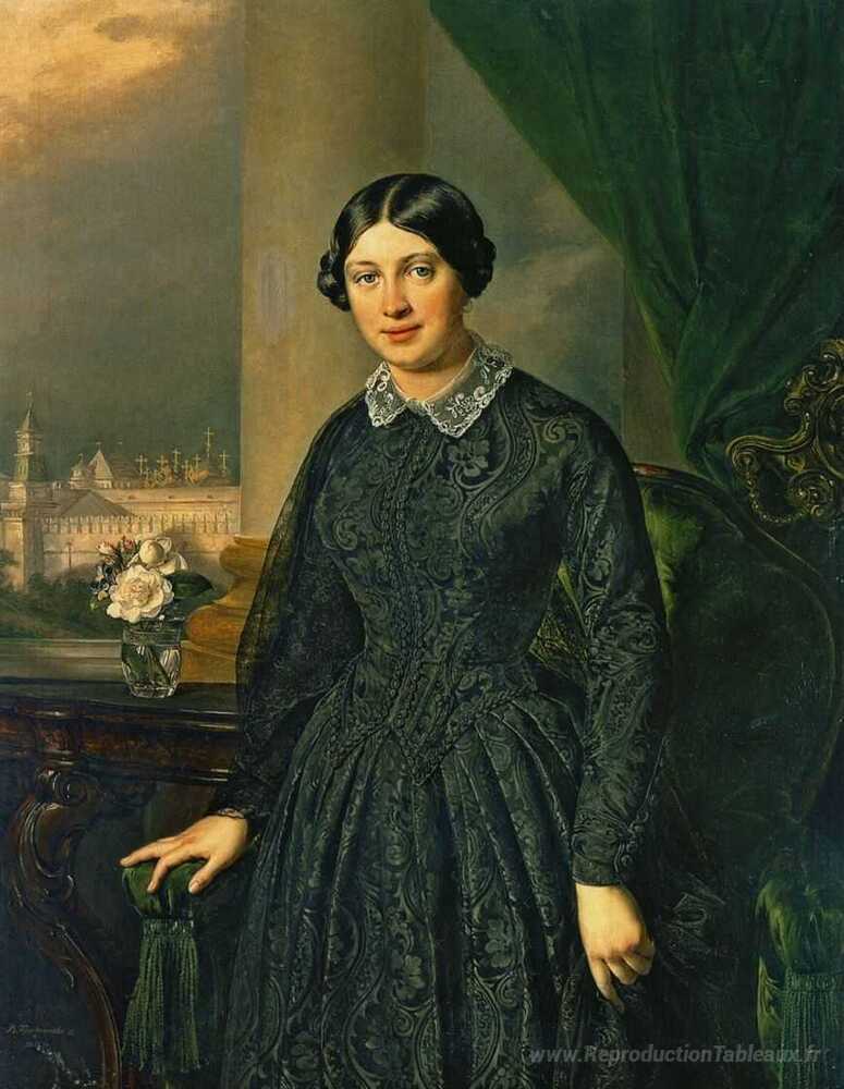 Nous vous proposons une reproduction artisanale sur toile du célèbre tableau 'Portrait de Levitskaya Volkonskaya' de Vasily Tropinin, provenant du Musée de la Reproduction.