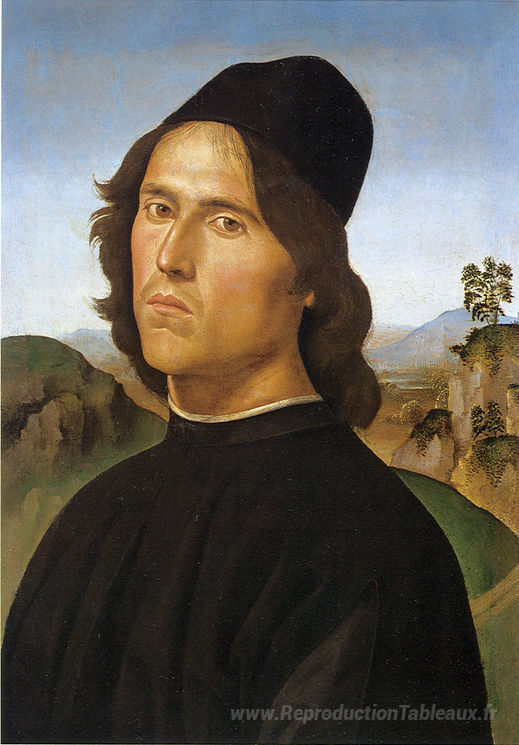 Nous vous proposons une reproduction artisanale sur toile du célèbre tableau 'Portrait de Lorenzo di crédi' de Pietro Perugino, provenant du Musée de la Reproduction.
