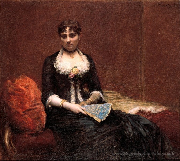 Nous vous proposons une reproduction artisanale sur toile du célèbre tableau 'Portrait de Madame Léon Maître' de Henri Fantin-Latour, provenant du Musée de la Reproduction.