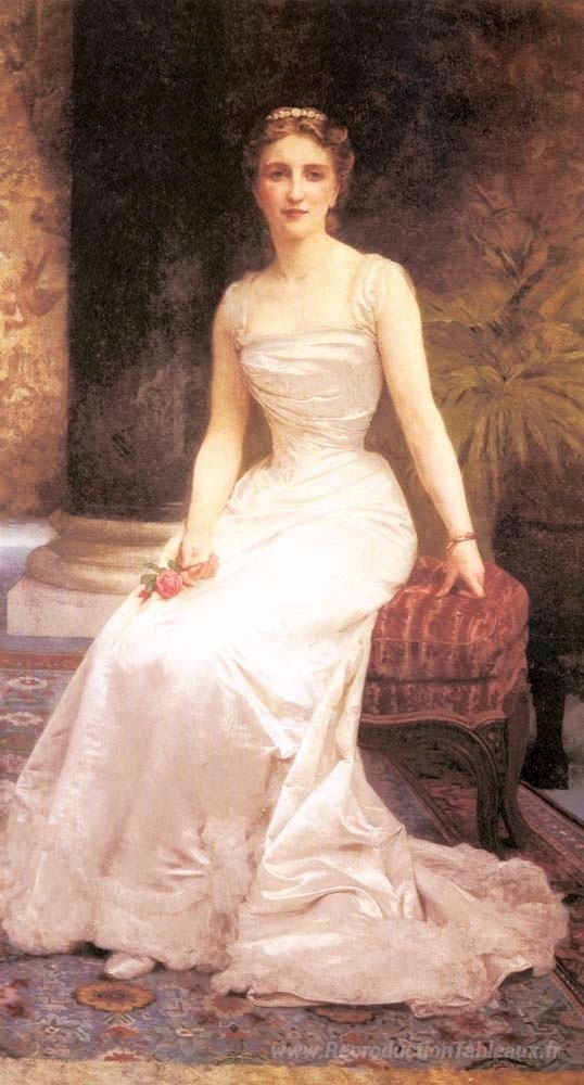 Nous vous proposons une reproduction artisanale sur toile du célèbre tableau 'Portrait de Madame Olry Roederer' de William-Adolphe Bouguereau, provenant du Musée de la Reproduction.