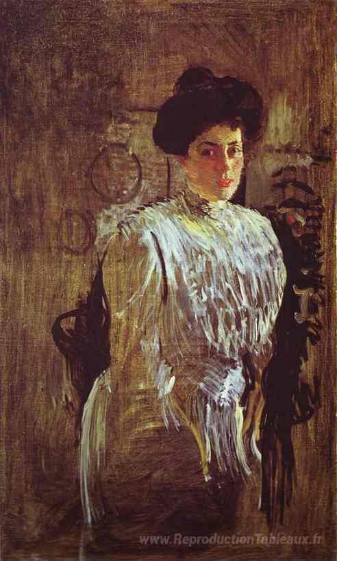 Nous vous proposons une reproduction artisanale sur toile du célèbre tableau 'Portrait de Margarita Morozova' de Valentin Serov, provenant du Musée de la Reproduction.
