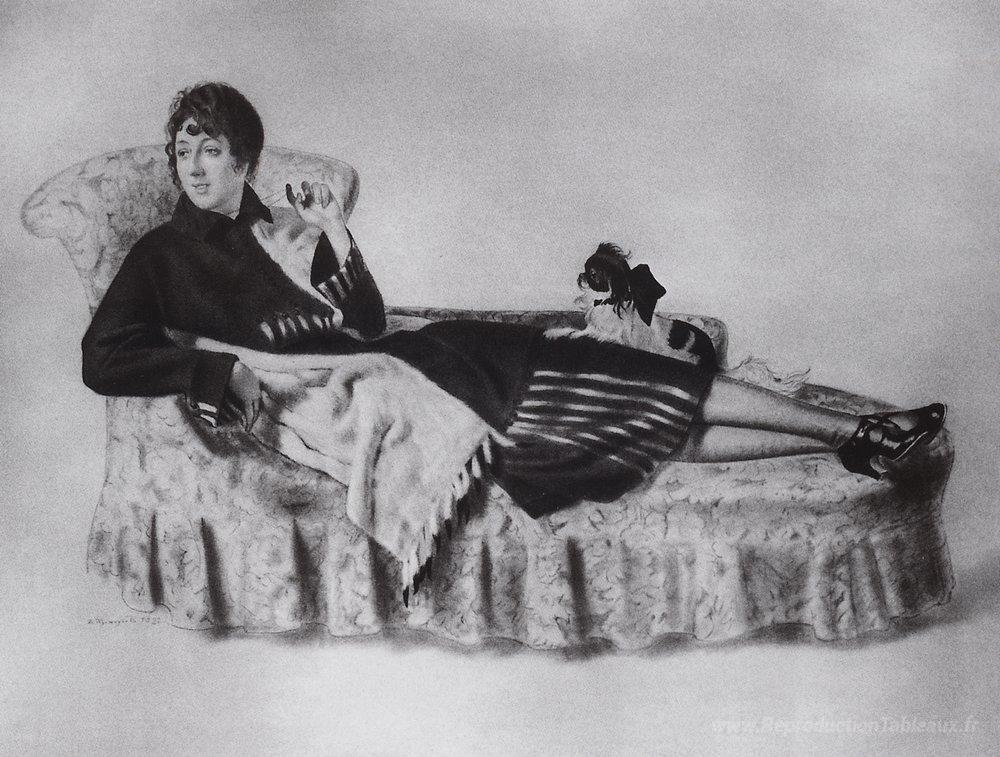 Nous vous proposons une reproduction artisanale sur toile du célèbre tableau 'Portrait de Maria Ryazantseva' de Boris Kustodiev, provenant du Musée de la Reproduction.