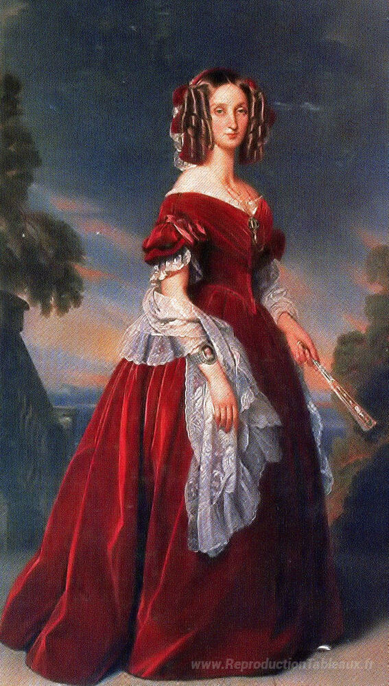 Nous vous proposons une reproduction artisanale sur toile du célèbre tableau 'Portrait de Marie Louise, la première reine des Belges' de Franz Xaver Winterhalter, provenant du Musée de la Reproduction.