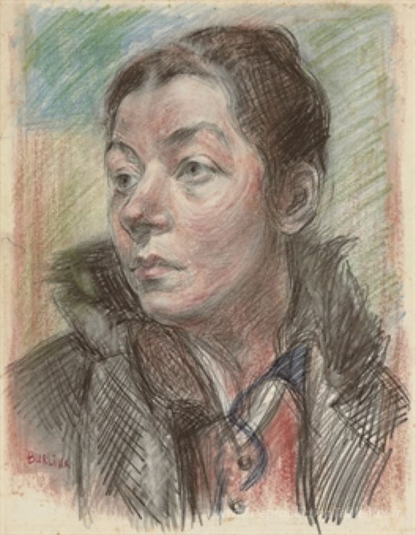 Nous vous proposons une reproduction artisanale sur toile du célèbre tableau 'Portrait de Marusia Burliuk' de David Burliuk, provenant du Musée de la Reproduction.