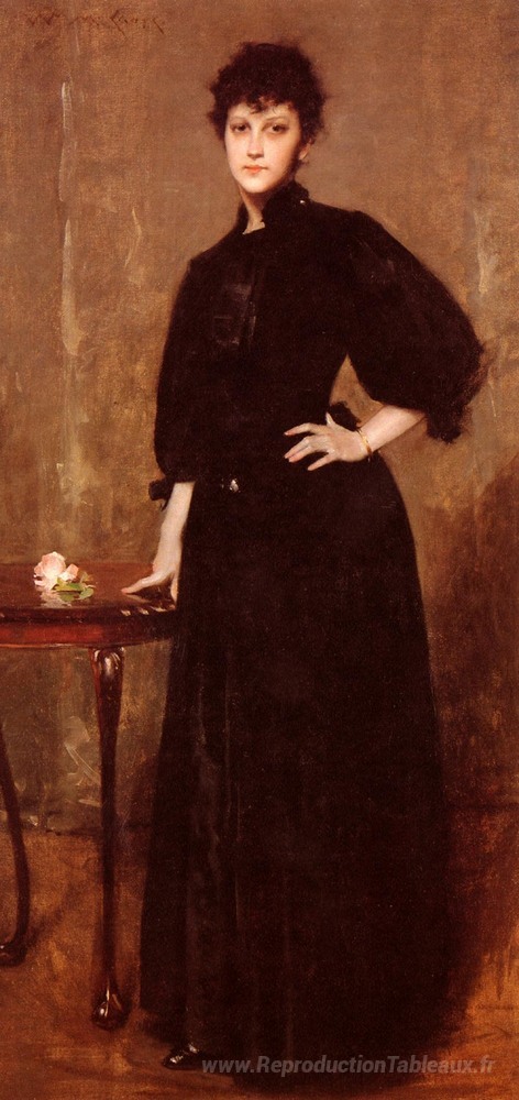 Nous vous proposons une reproduction artisanale sur toile du célèbre tableau 'Portrait de Mme C' de William Merritt Chase, provenant du Musée de la Reproduction.
