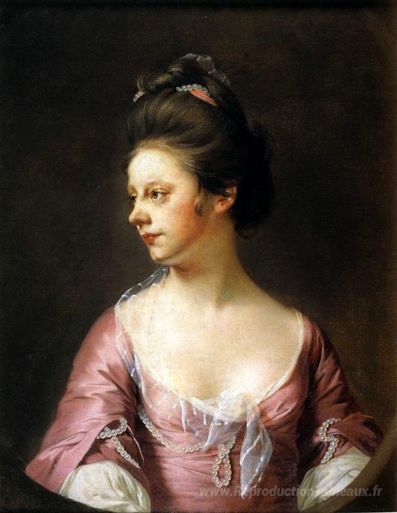 Nous vous proposons une reproduction artisanale sur toile du célèbre tableau 'Portrait de Mme Catherine Swindell' de Joseph Wright, provenant du Musée de la Reproduction.