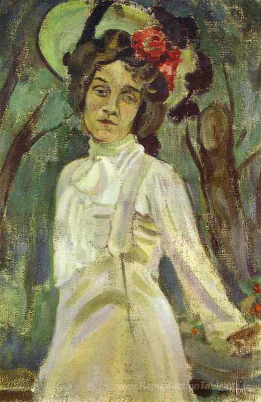 Nous vous proposons une reproduction artisanale sur toile du célèbre tableau 'Portrait de Nadezhda Staniukovich' de Victor Borisov-Musatov, provenant du Musée de la Reproduction.