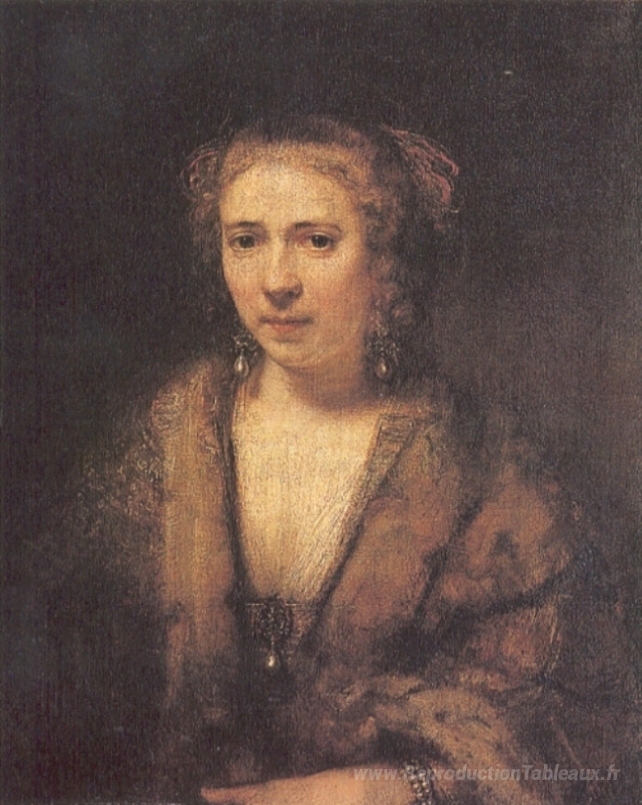 Nous vous proposons une reproduction artisanale sur toile du célèbre tableau 'Portrait de Stoffels Hendrikje' de Rembrandt, provenant du Musée de la Reproduction.