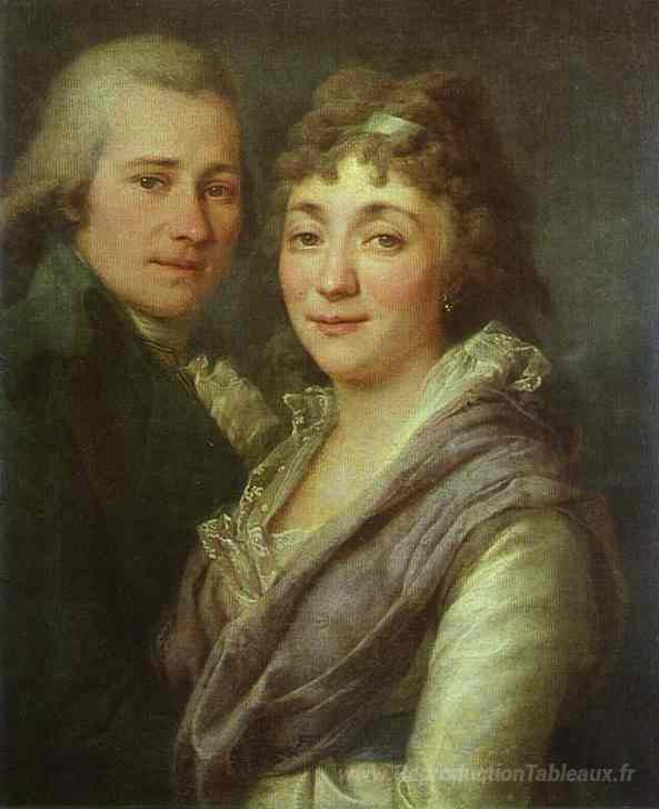 Nous vous proposons une reproduction artisanale sur toile du célèbre tableau 'Portrait de V. I. Mitrofanov et M. A. Mitrofanova' de Dmitry Levitzky, provenant du Musée de la Reproduction.