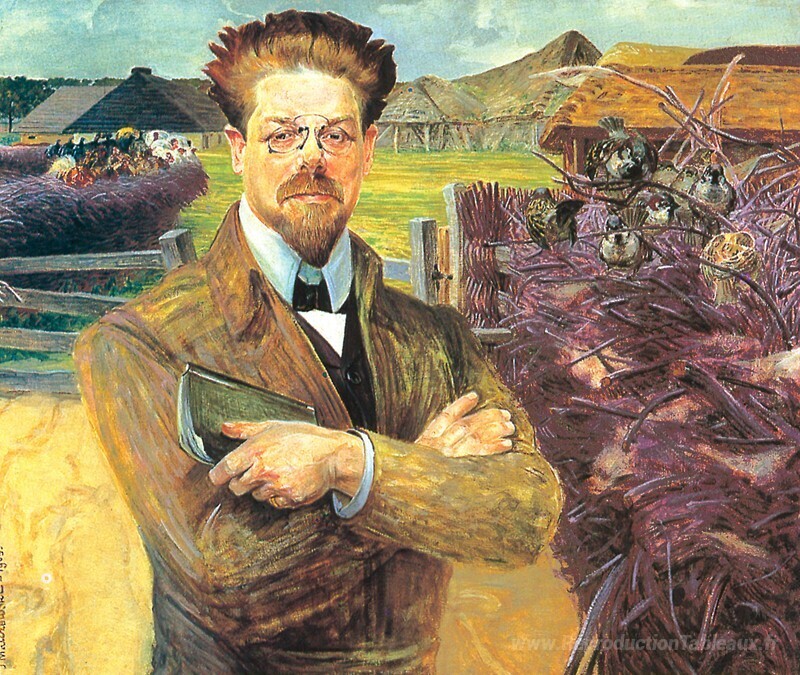 Nous vous proposons une reproduction artisanale sur toile du célèbre tableau 'Portrait de Wladyslaw Reymont' de Jacek Malczewski, provenant du Musée de la Reproduction.
