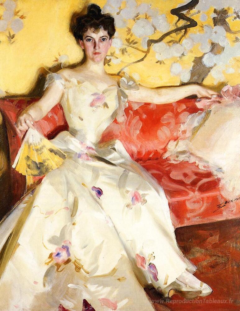 Nous vous proposons une reproduction artisanale sur toile du célèbre tableau 'Portrait d'Elizabeth Sherman Cameron' de Anders Zorn, provenant du Musée de la Reproduction.