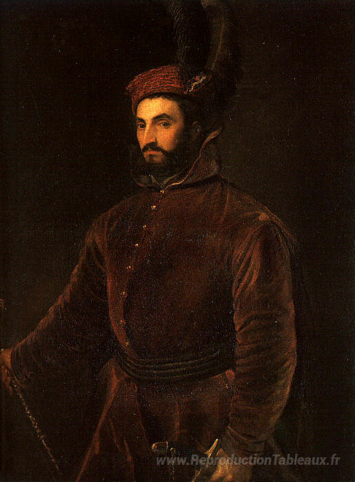 Nous vous proposons une reproduction artisanale sur toile du célèbre tableau 'Portrait d'Ippolito de Medici dans un costume hongrois' de Titian, provenant du Musée de la Reproduction.