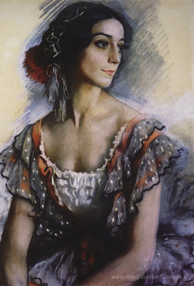 Nous vous proposons une reproduction artisanale sur toile du célèbre tableau 'Portrait d'Ivanov dans un costume Espagnol' de Zinaida Serebriakova, provenant du Musée de la Reproduction.