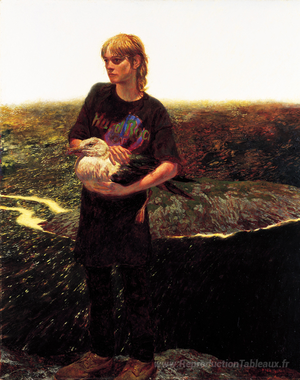 Nous vous proposons une reproduction artisanale sur toile du célèbre tableau 'Portrait d'Orca Bates' de Jamie Wyeth, provenant du Musée de la Reproduction.