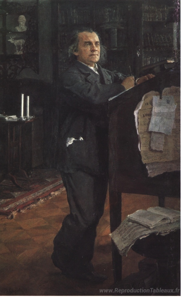 Nous vous proposons une reproduction artisanale sur toile du célèbre tableau 'Portrait du compositeur Alexander Serov' de Valentin Serov, provenant du Musée de la Reproduction.