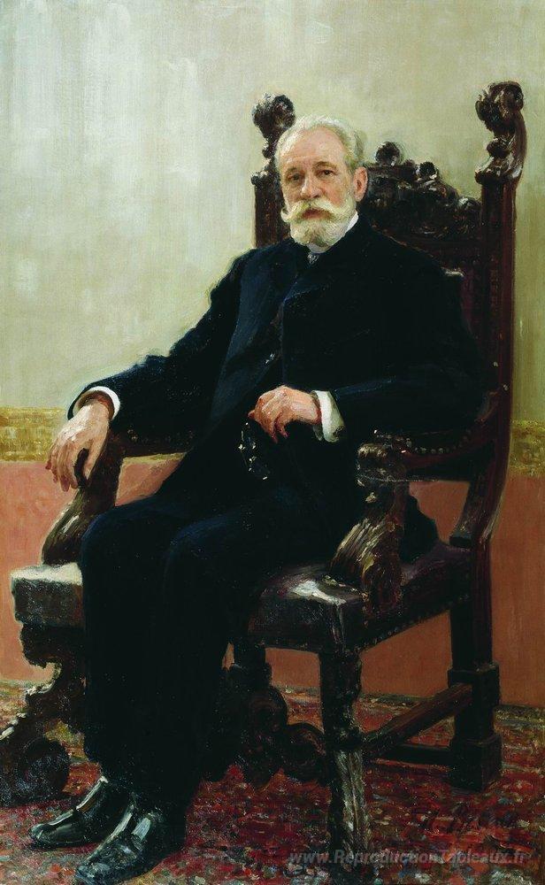 Nous vous proposons une reproduction artisanale sur toile du célèbre tableau 'Portrait du président de la Banque commerciale Azov-Don à Saint-' de Ilya Repin, provenant du Musée de la Reproduction.