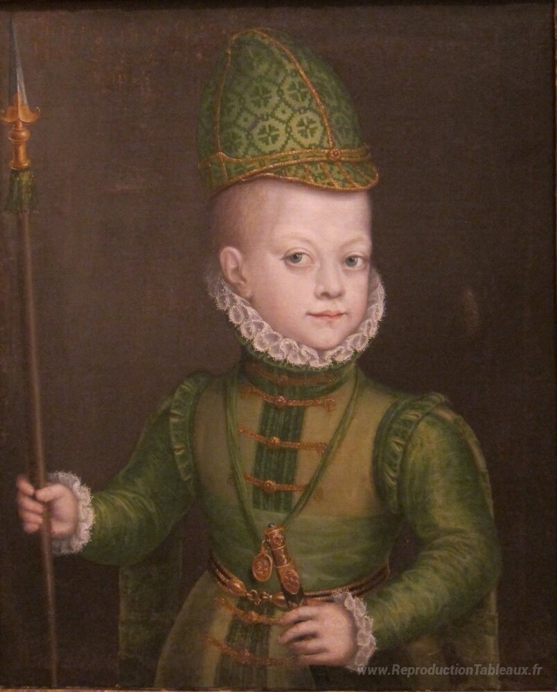 Nous vous proposons une reproduction artisanale sur toile du célèbre tableau 'Portrait d'un garçon à la cour espagnole' de Sofonisba Anguissola, provenant du Musée de la Reproduction.