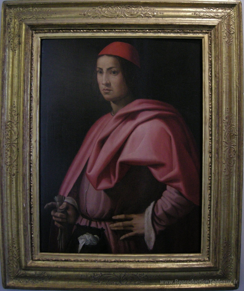Nous vous proposons une reproduction artisanale sur toile du célèbre tableau 'Portrait d'un gentleman de Florence' de Giorgio Vasari, provenant du Musée de la Reproduction.