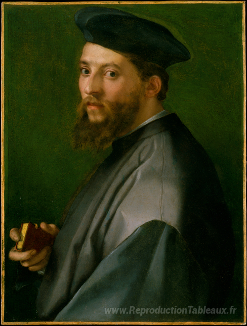 Nous vous proposons une reproduction artisanale sur toile du célèbre tableau 'Portrait d'un homme' de Andrea del Sarto, provenant du Musée de la Reproduction.