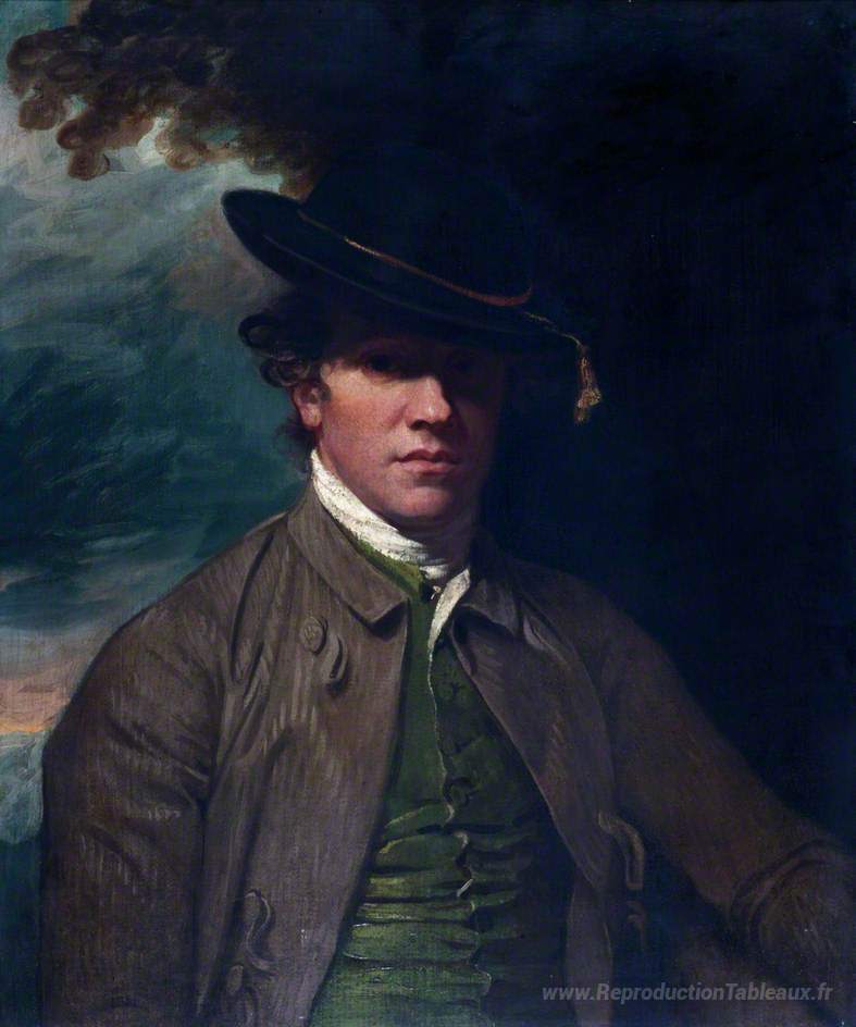 Nous vous proposons une reproduction artisanale sur toile du célèbre tableau 'Portrait d'un jeune homme de la famille Maynard' de George Romney, provenant du Musée de la Reproduction.