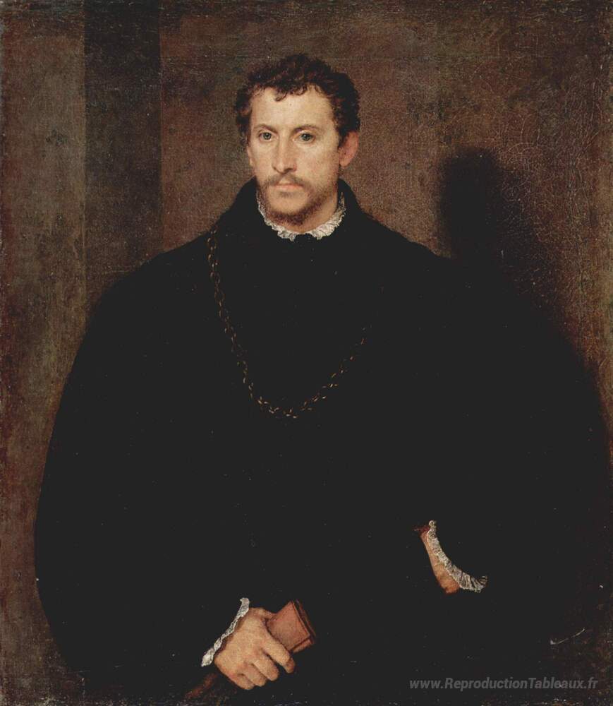 Nous vous proposons une reproduction artisanale sur toile du célèbre tableau 'Portrait d'un jeune homme (le jeune Anglais)' de Titian, provenant du Musée de la Reproduction.