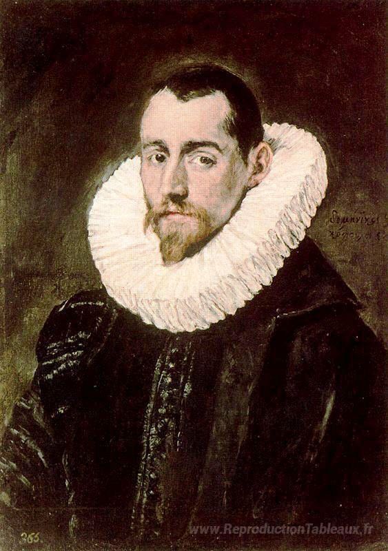 Nous vous proposons une reproduction artisanale sur toile du célèbre tableau 'Portrait d'un jeune homme' de El Greco, provenant du Musée de la Reproduction.