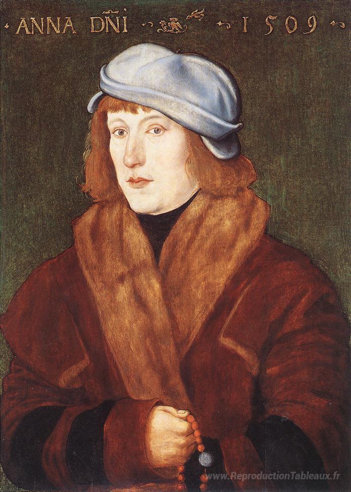 Nous vous proposons une reproduction artisanale sur toile du célèbre tableau 'Portrait d'un jeune homme' de Hans Baldung, provenant du Musée de la Reproduction.